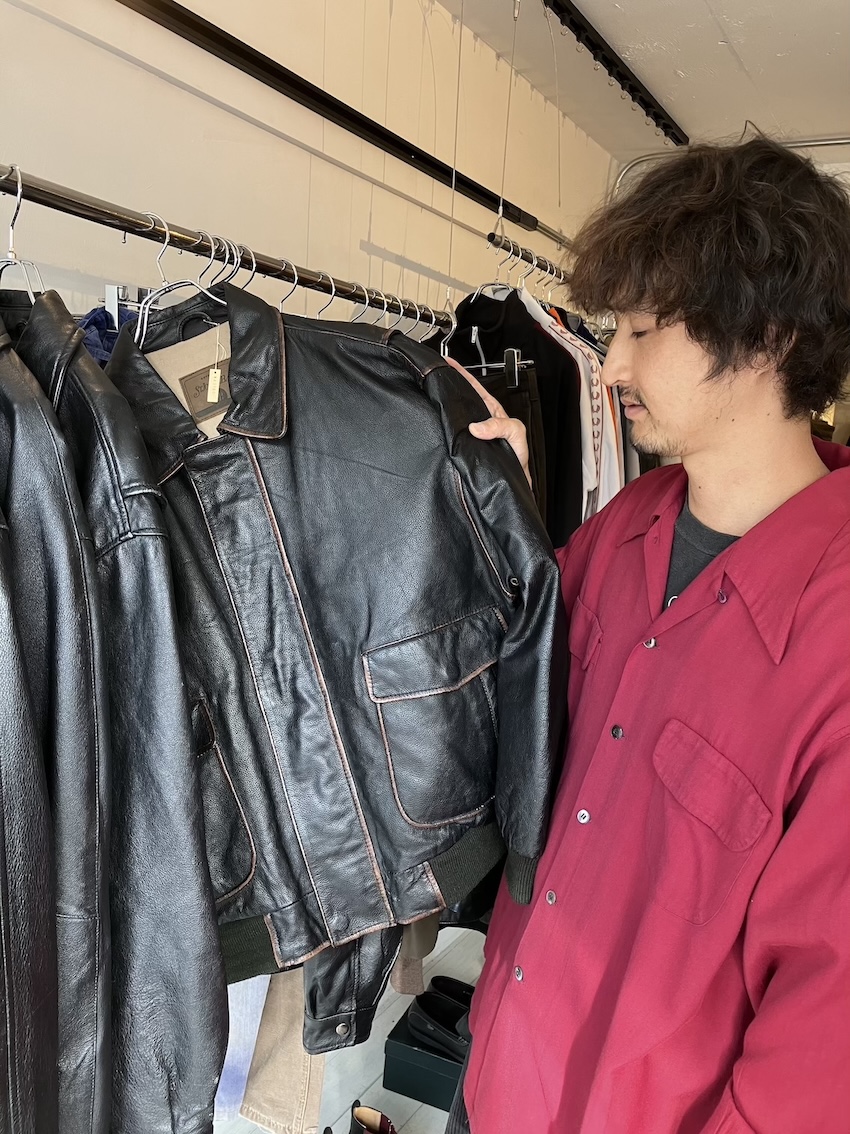 須藤「例えばこのA2タイプのレザーは、セントジューンズベイっていうメーカーなんですが、こういういい状態のは揃いづらいんですよ。仕入れの仕方があると思うんですけど。こういうのを厳選して置けるというのはちっちゃなお店の強みでもあるんです」