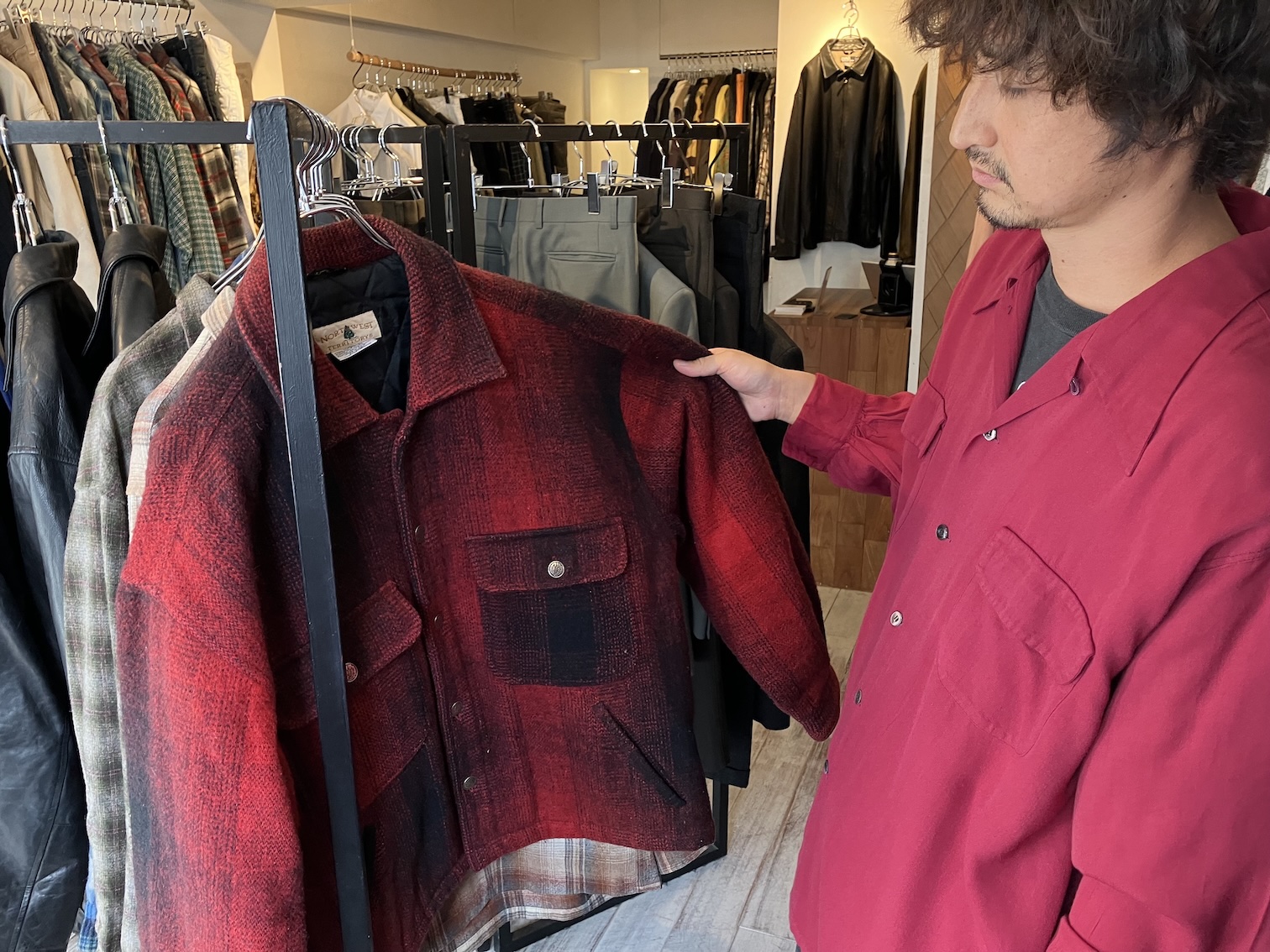 須藤「これはノースウエストツリーっていうチェックシャツ。すごくいいものを作るメーカーなんですけど、ジャケットタイプが珍しくて、短丈でスラッシュポケットで、この形自体が本当に出てこないんでこの1色しか見たことないです」