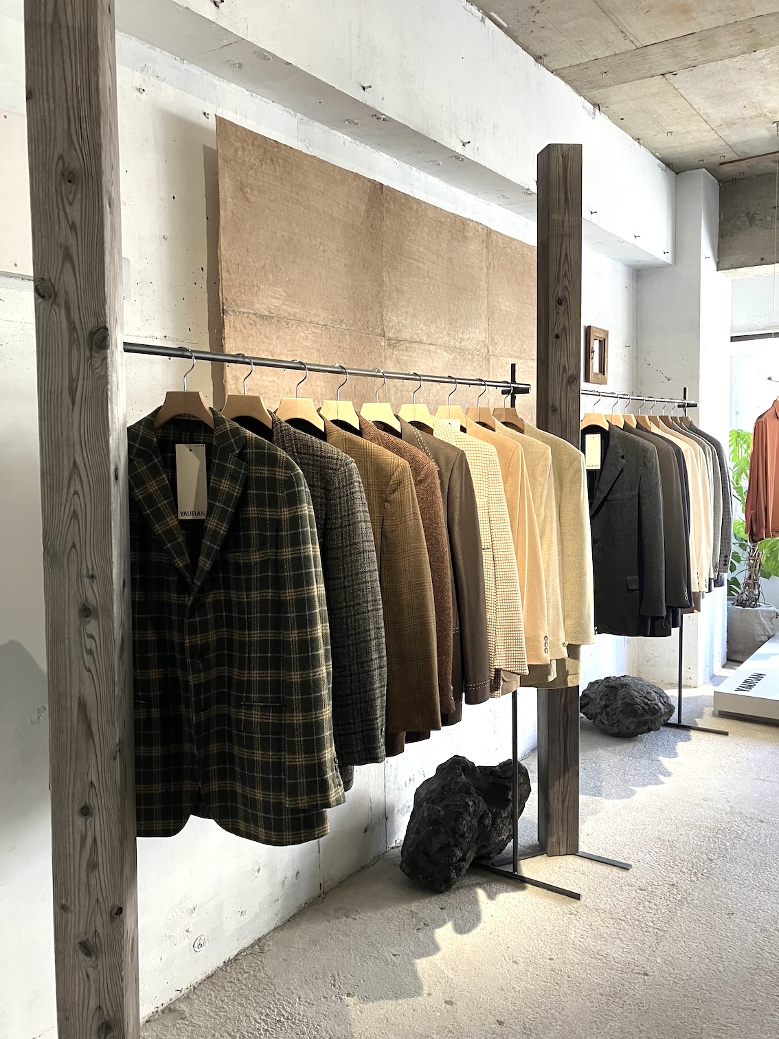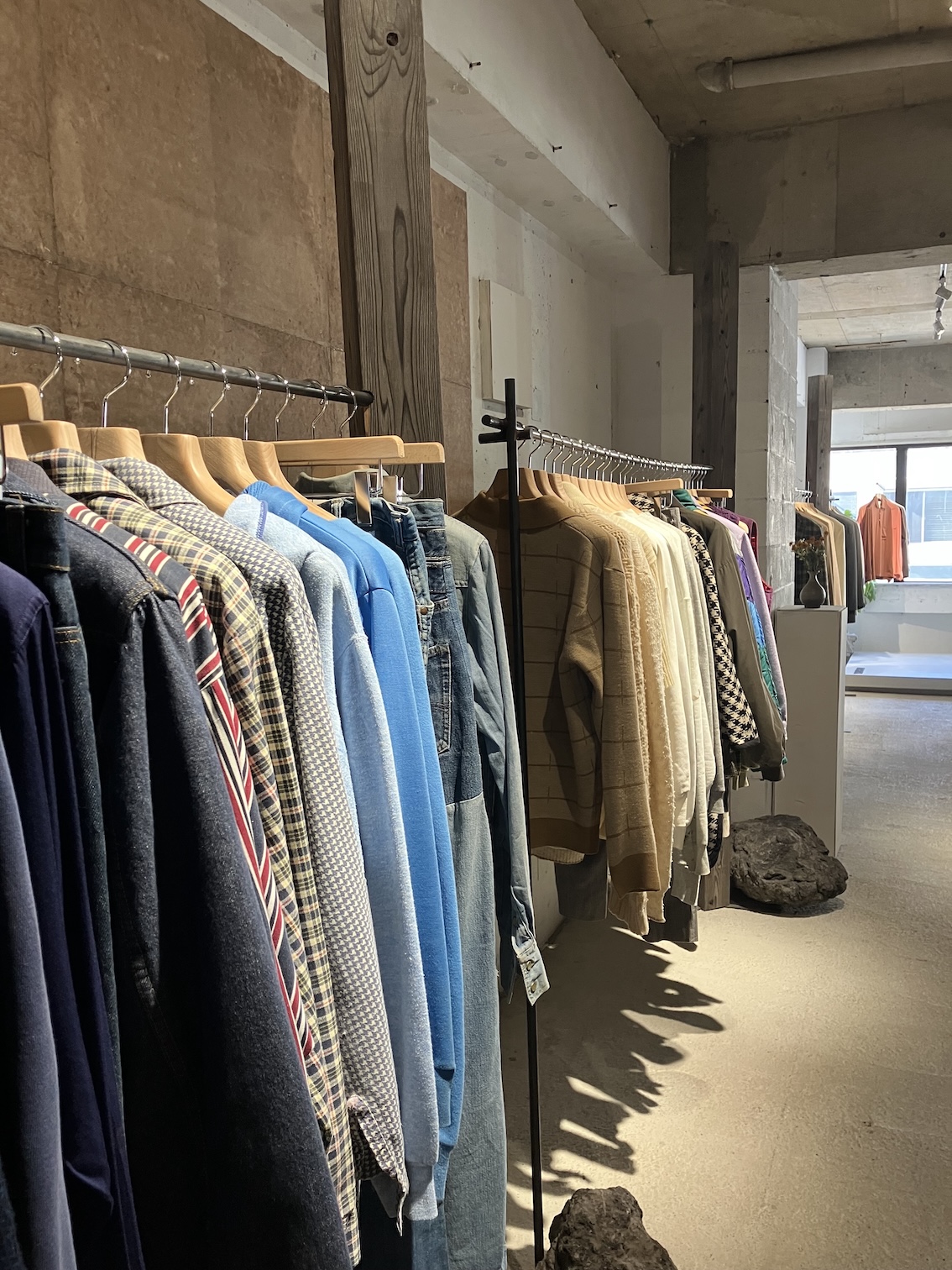 【美容師と服vol.24/Fumiyaさん(OLTA)と世田谷の『yauran』】 2025.12.08 yauran 三軒茶屋と下高井戸を結ぶ、東京のローカル線・東急世田谷線。2両編成の電車に乗って、のんびりトコトコゆられて世田谷駅下車。南に向かって歩いて、世田谷通りを超えたあたり。高い建物がなく、都心らしからぬ穏やかな空気に包まれる街に、yauran(ようらん)はあります。 ◼️60年代の後半から70年代初頭ぐらい、良質な生地の「ちょっとはみ出た」服 ―稲葉さんはどんなキャリアなんですか? 稲葉「僕はコネクターでは高校3年、17歳ぐらいから働いていました。そこに2年半ぐらいいて池尻大橋にある『HAg-Le』(はぐれ)に移って、7〜8年いてから独立しました」 ―高校生でこの世界に? 筋金入りですね。このyauranはどんなコンセプトですか? 稲葉「yauranは揺藍の英語表記なのですが、ゆりかごみたいな意味なんです。この空間がゆりかごみたいな。その中にいるのは赤ちゃん。赤ちゃんは何も情報がないものなので、自分が知っている情報で洋服を見るんじゃなくて、先入観や偏見をもたずにカッコいい洋服を見てほしいという思いを込めています。自分でも洋服を買い付けに行くときにそれを意識しています」 ―そのコンセプトには、ご自身のキャリアが反映されてますよね。どうしてそういうふうに? 稲葉「前職の『HAg-Le』に勤めていたことが大きいかもしれないですね。『HAg-Le』自体は、ベースはかなりアメリカンカジュアルなお店なんですが、入荷されるものを見ていたら、自分はこの店の中にある一部分の洋服が好きなんだということに気がついて。おそらく100%の中の10%くらい。自分でお店をやるときはそこをフックアップしたお店をやりたいなって思っていたんです」 ―それ、もっと具体的にいうと? 稲葉「なんだろう……僕が一番好きな洋服を仕入れるときに買うのは60年代の後半から70年代初頭ぐらいの洋服が多いんですが、その時代ってファッションの遍歴で言うと、メンズファッション自体はまだ洋服が多様化しているような時代じゃないんですよ。80年代ぐらいからいろんなデザインの洋服がいっぱい生まれて広がっていくんですが、当時はデザインのベースが決まっている時代なんです。そのベースがある洋服からちょっとはみ出た洋服とかが、60年代ぐらいのヴィンテージの洋服の中にたまにあったりするんです。そういうものをよく買い付けたりしていますね」 ―かなりこだわりがある感じがしますね。 稲葉「60〜70年代のフラワームーブメントとかヒッピーカルチャーなど、抑制がかなり解放されてドラッグカルチャーとかになる直前の、人間にかなり鬱憤が溜まっているような時代の洋服がすごい好きというか」 ―ふむふむ。 稲葉「生地の歴史を見ても、60年代の後半ぐらいで世界的に工場で使っている生地を織る機械が全部変わっちゃうんですよね。大量生産に向けて、スウェットの吊り編み機とかも全部変わりました。昔の方が時間をかけてゆっくり生地を作るから、いい生地ができるんです。そういう面から見ても価値を感じています」 ―いくつぐらいからそういう勉強をしてるんですか? 稲葉「初めて古着を買いに行ったのが中学校2年生ぐらいだったんですけど、中高生の当時は寝る前に古着屋さんのブログを50件ぐらい読むみたいな生活をしてましたね」 ―生地の勉強はどうやってするんですか? 稲葉「もう服を見続ける。古い洋服とか。で、いろんな人に話を聞きに行くってところですかね」 1 2 3 4 5 6 Tweet Share +1 Hatena Pocket RSS feedly Pin it Interview #choki2jp, #chokichoki, #streetfashion, #streetstyle, #streetwear, #おしゃれ美容師, #ガールズヘア, #ガールズヘアカタログ, #ストリートスナップ, #ストリートファッション, #チョキチョキ雑誌, #メンズヘアファッションマガジン, #レディースヘア, #レディースヘアカタログ, #原宿スナップ, #古着, #古着コーデ, #古着好きな人と繋がりたい, #美容学校, #美容学生, #美容師カルチャー, #美容師ファッション, メンズヘア, メンズヘアカタログ コメント: 0 【2025Top Hair Picks!!!/長峯千紘(blocjapon)】 【2025Top Hair Picks!!!/REN (Steelo)】 関連記事一覧 【美容師と服vol.14/松下栞奈さん(CANAAN)と『SLOW』】 2025.08.19 【美容師と服vol.22/島田新さん(puune)と中目黒の『Ca... 2025.11.23 初の単行本『美容師あるある物語』発売記念!イラスト... 2020.01.11 【美容師と服vol.16/酒井元樹さん(iLe.)と『彼岸』・... 2025.09.04 THEATER 佐々木達也さんPART2「美容業界を変えるとい... 2019.12.16 Lysa YUKIさん PART2「お客様が髪型だけじゃなく、自分... 2019.07.08 【美容師と服vol.17/Ricoさん(Liko by maris)と『HUN... 2025.09.20 SHACHU オーナー みやちのりよしPART1「優秀な落ちこ... 2019.09.08 コメント ( 0 ) トラックバック ( 0 ) この記事へのコメントはありません。 この記事へのトラックバックはありません。 トラックバック URL 返信をキャンセルする。 名前 ( 必須 ) E-MAIL ( 必須 ) ※ 公開されません URL