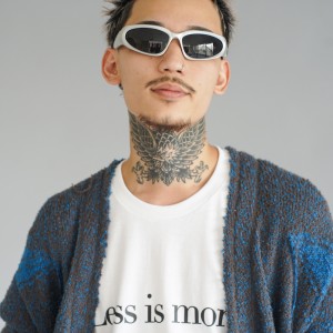 「90年代のグランジの空気感がいいなと感じており、そのものの髪型を真似するのではなく、要素としてグランジ感をふわっと感じさせるのが格好いいと思ったので、このテーマにしました」。ヘアはアイスブルーのカラーが目を引くベリーショート。「長短のあるベリーショートに、くすんだ水色を合わせ、エッジの効きすぎないバランスを意識しました。いい意味で、自分で切って染めたようなバランス感にこだわりました」。ファッションはルーズなシルエットに、ダメージ感のある雰囲気がグランジっぽい。「90年代らしさのあるルーズなシルエットに、シャープなヘアスタイルを持ってくるコントラストが気に入っています」。