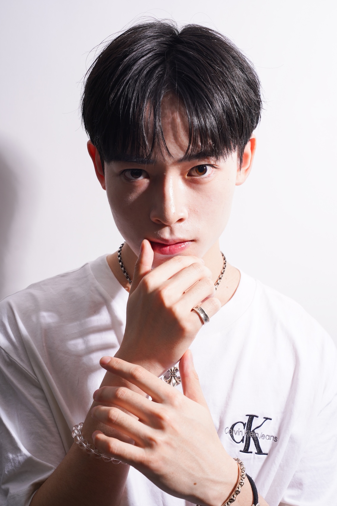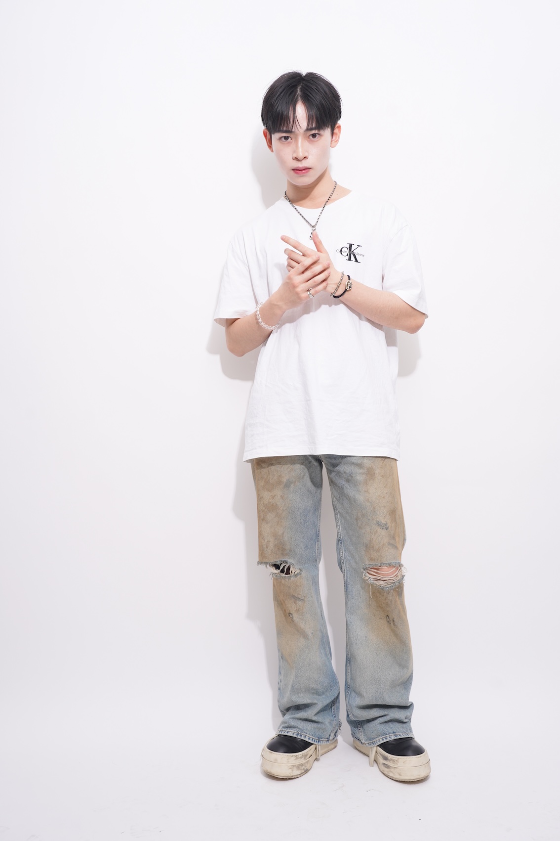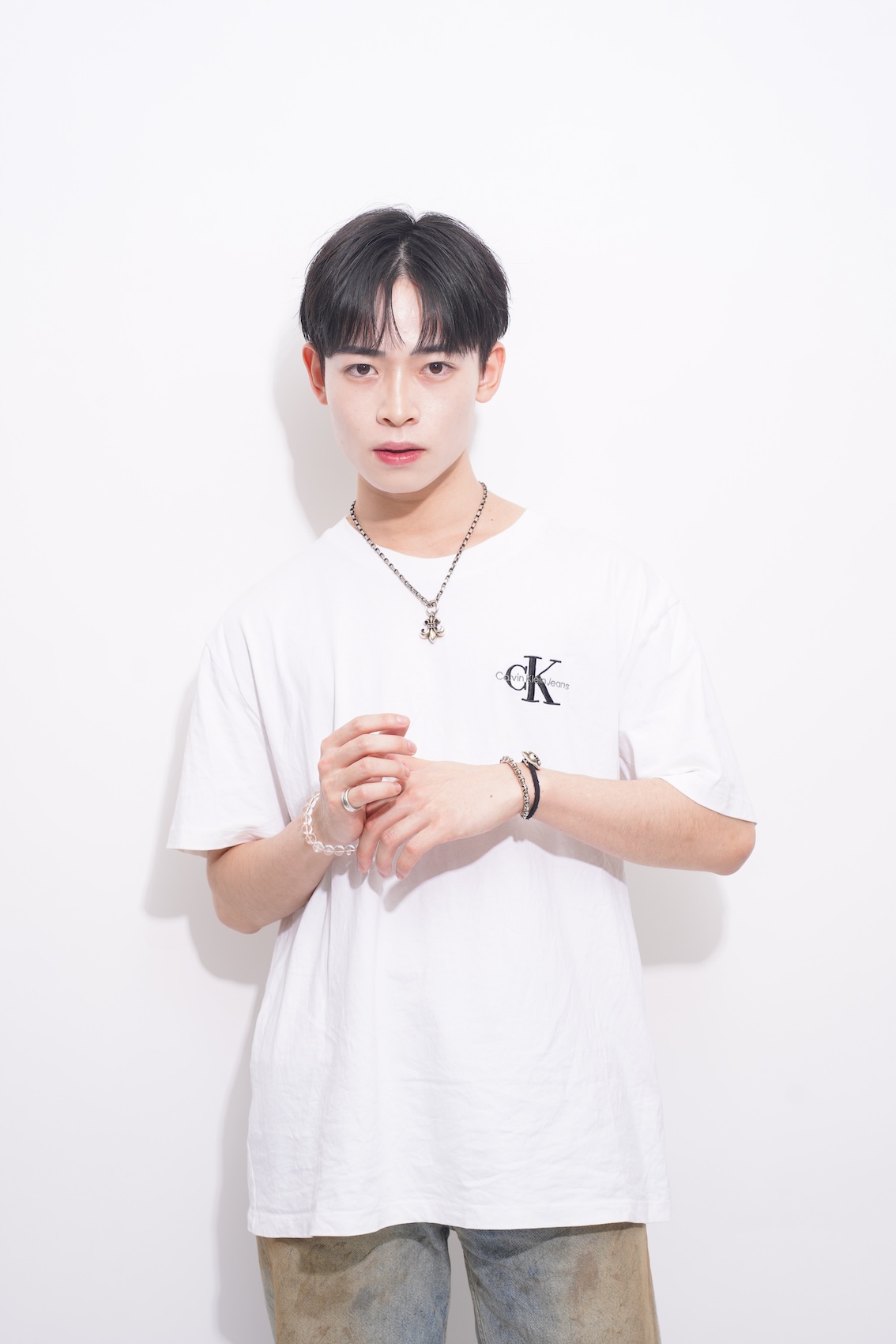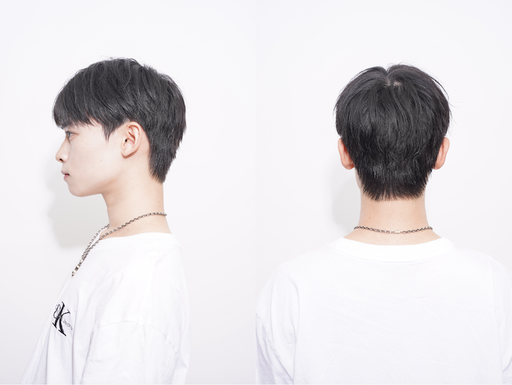 「韓国テイストに夏にぴったりの爽やかさをミックスしたかったから」というストレートなテーマ。仕上がりの自然さは、「縮毛矯正やダウンパーマを駆使して、骨格矯正しながらボリュームをしっかり抑え、レイヤーを織り交ぜて軽さを表現しました!」という施術によって実現されたもの。ぱっと見の爽やかさや清潔感、まとまりは、実は確かな技術によって生み出されているのだ。「夏は軽めの色味で王道白Tシャツデニムで揃え、韓国アイドルの空港ファッションをイメージさせました!」