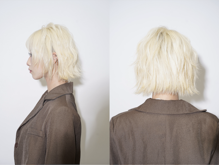 カットはボブベース。顔周りのレイヤー+表面にレイヤーをいれることで動きを出しやすくするようカット。カラーはブリーチ2〜3回で、抜きっぱなしに。