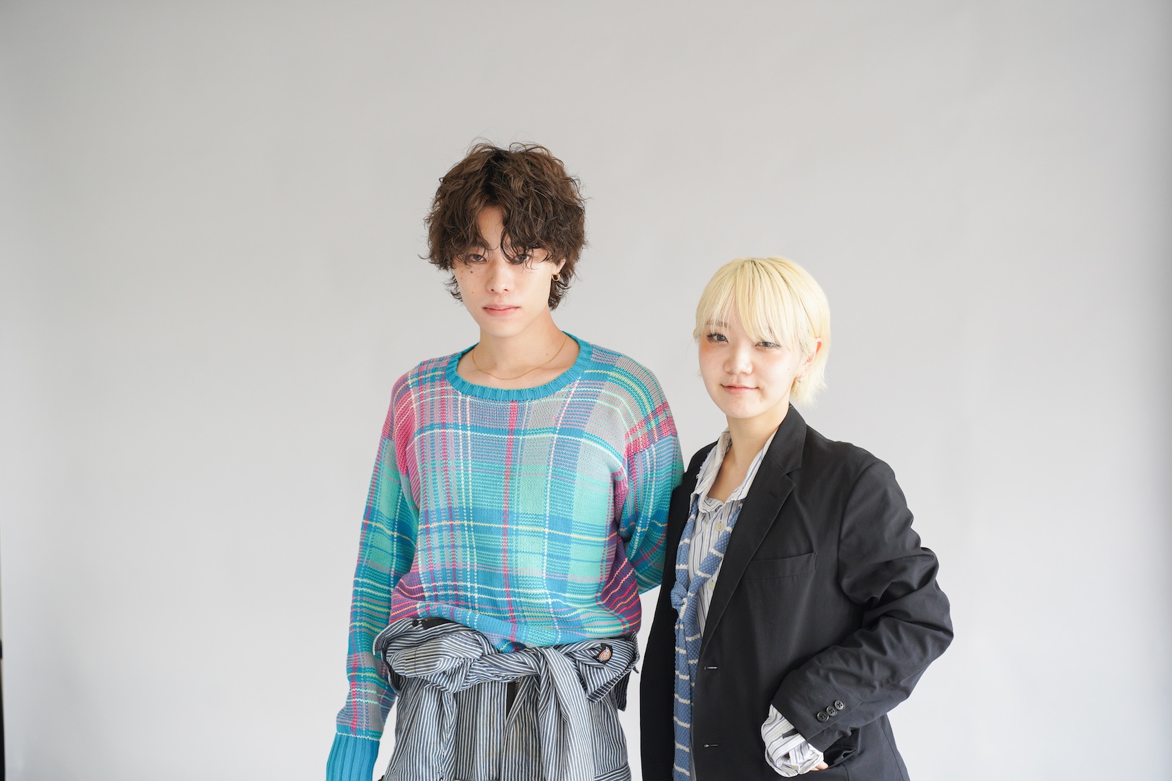 このスタイルの背景にあるのは「ロンドンのアートスクール出身の若者たちが持つ、『反骨 × 色 × ユーモア』の精神。完璧よりも“感覚”を優先する、クリエイティブな不均衡美に感化されたから」。独自で自由な表現をする学生は、そのルックスも表現の一部になっている。ヘアについては「無造作なウェーブや軽い束感は、“頑張らないモード”=ロンドンっぽさの象徴。スタイリングしすぎない“自然体”で、頑張ってないけどおしゃれ」を狙ったもの。ファッションは「ストリートの抜け感+モードの構築感」がコンセプト。配色がおしゃれ。