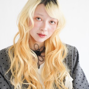 このテーマの芯は「時代に左右されず古くから愛され、不要なものを徹底的に削ぎ落として、形・素材・バランスアンドの少ない要素で美しさを成立させる「minimal」の強さと、好きなもの、大切にしているものを「freedom:自由」に表現できる人になりたい」という担当のホシノさんの想いにある。ヘアについては「奇抜な色や形よりも、素材の質感が主役の軽さと柔らかい動きのあるウルフです。無機質でミニマルな土台に、自然にできた遊び心のあるハネが一つ強いポイントです」。ファッションもヘアと同様に「素材×質感」を意識してスタイリングしたという。「ミニマルなグレーのセットアップで重い印象にならないように、遊びのある質感のニットをレイヤードし、テクスチャーアートなコーデに仕上げました。ニットの袖が長さ、ピンクの紐、ジャケットをゆるっとだるそうに溜めて羽織るなど着こなしでも遊びをプラスしました!」