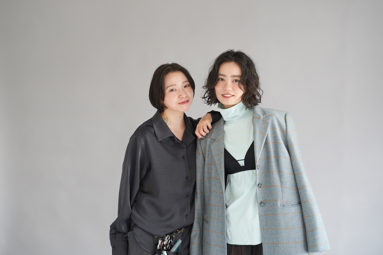 全体的にブラントでワンレンにカット。表面は動きを出すために少しレイヤーを入れる。カラーは、透明感を出すためにアッシュ系の色味をベースに、グレー、ラベンダーを混ぜて色味を作ったとのこと。