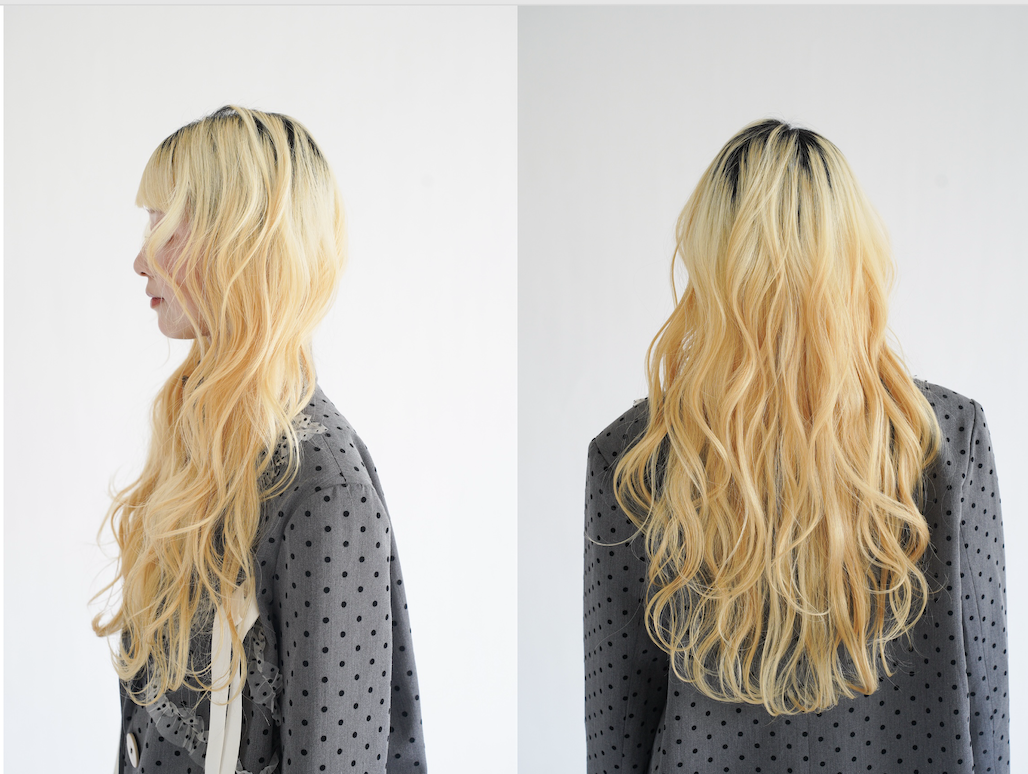 カットは顔まわりにレイヤーを入れて、パーマをかけた時にボリュームが出やすいように。パーマは、内巻きから入るウェーブ巻の中にmix巻も混ぜて、ふんわりボリュームが出るよう意識してかけている。